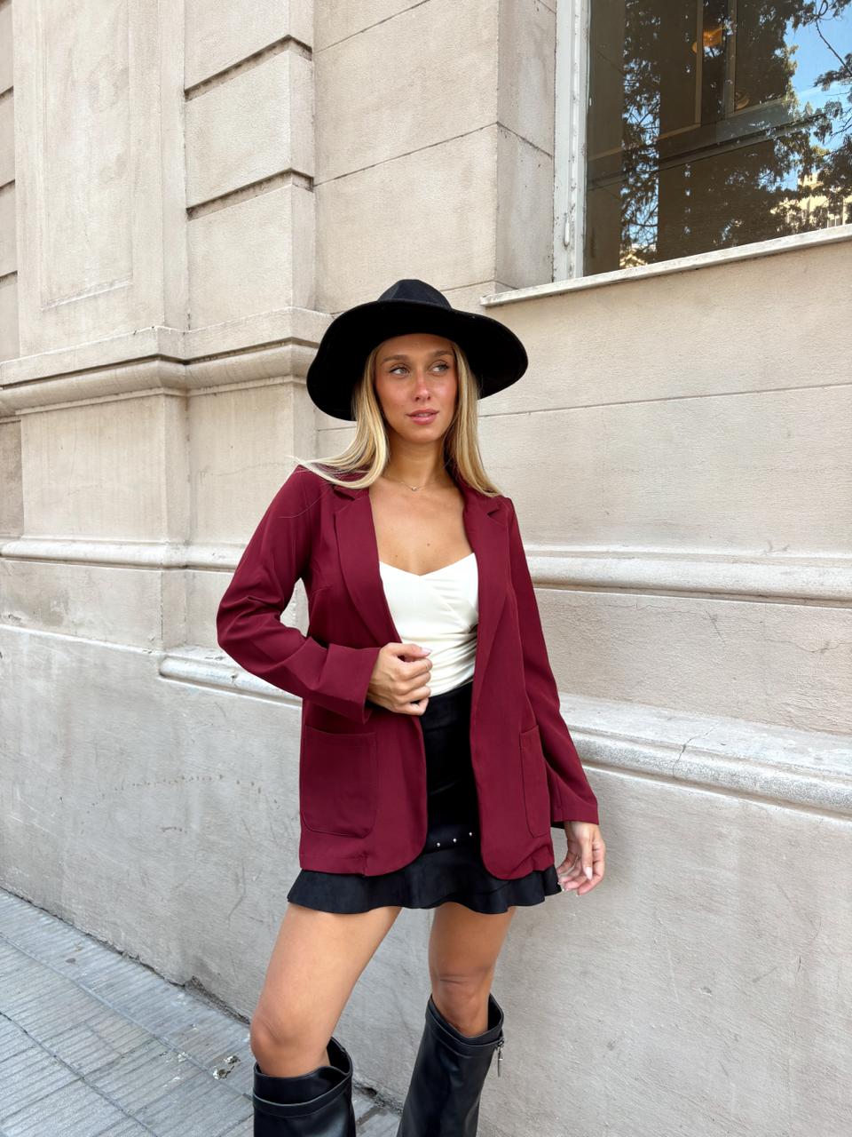 ♥ Blazer sastrero de crep clásico con bolsillos funcionales, Es una prenda corte chaqueta su uso puede ser formal o informal.