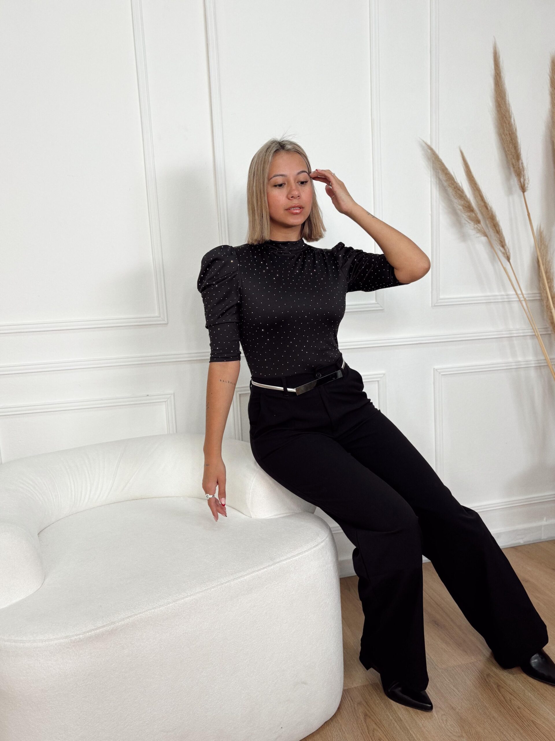 🤍 Este body te hace lucir espectacular 🔥 Su diseño realza tus curvas y levanta cualquier look transformándolo en uno sexual y elegante. Cuenta en su espalda con una abertura en “V” profunda que lo hacen super sexy pero delicado. Además, cuenta con un detalle que amamos! Sus mangas princesa 💄 Como si esto fuera poco tiene stras plateados esparcidos por todo el body, que lo dicen todo, agregan ese detalle romántico a la prenda que la termina de hacer perfecta 😍 Sin dudas el diseño protagonista que se lleva todas las miradas! ideal para looks de noche como una cena, un evento y mucho más ❤️