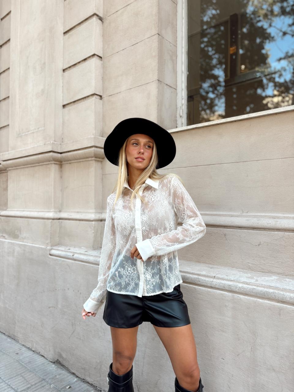 CAMISA CONCORDIA ENCAJE CON CUELLO Y PUÑO SEDITA