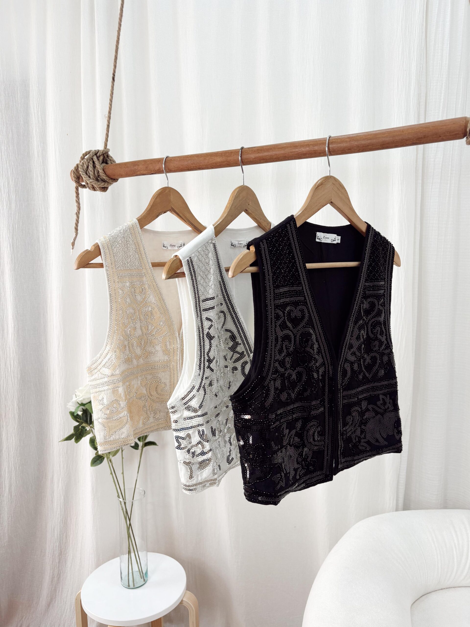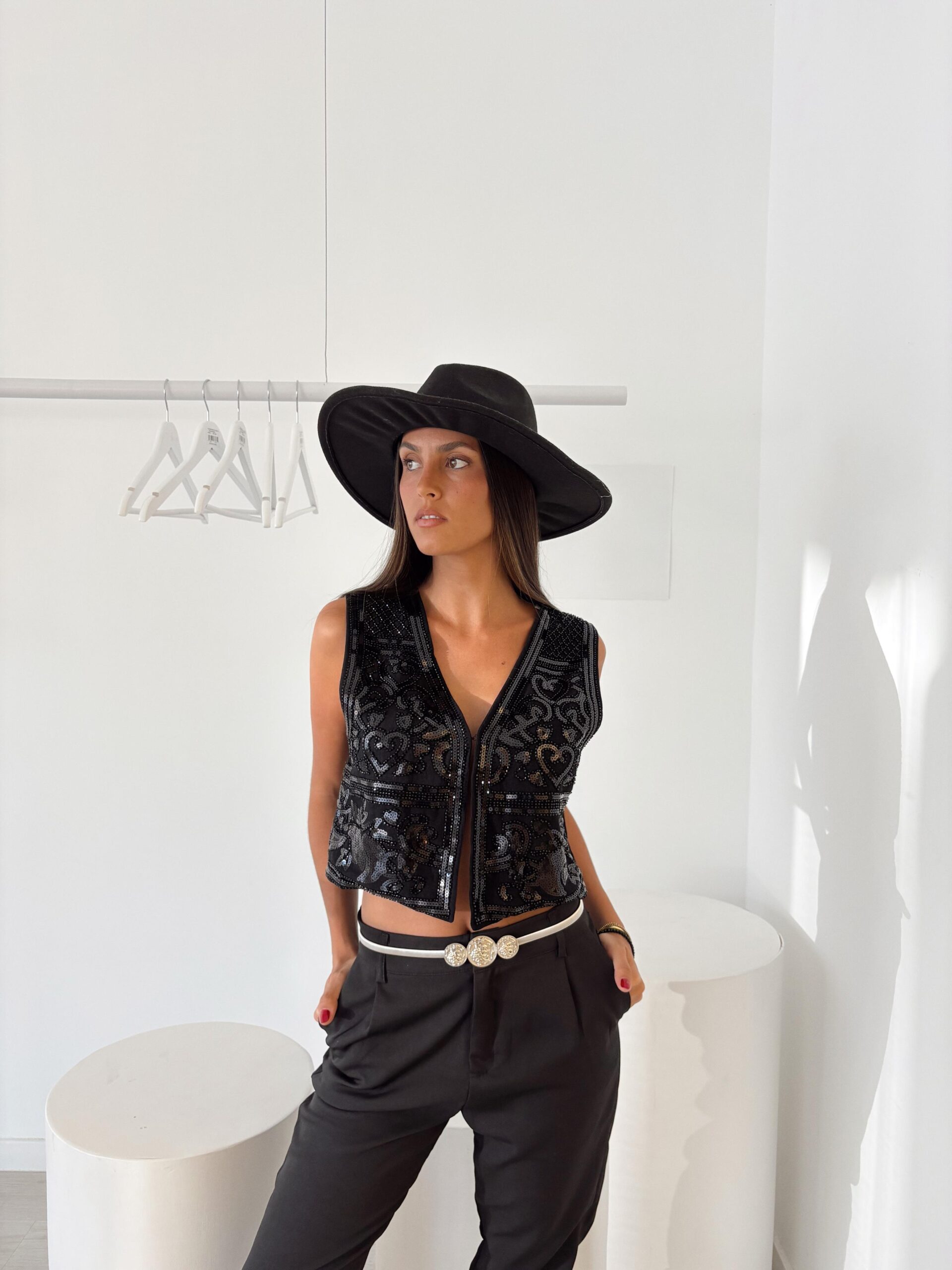 CHALECO DE LINO IMPORTADO LENTEJUELAS