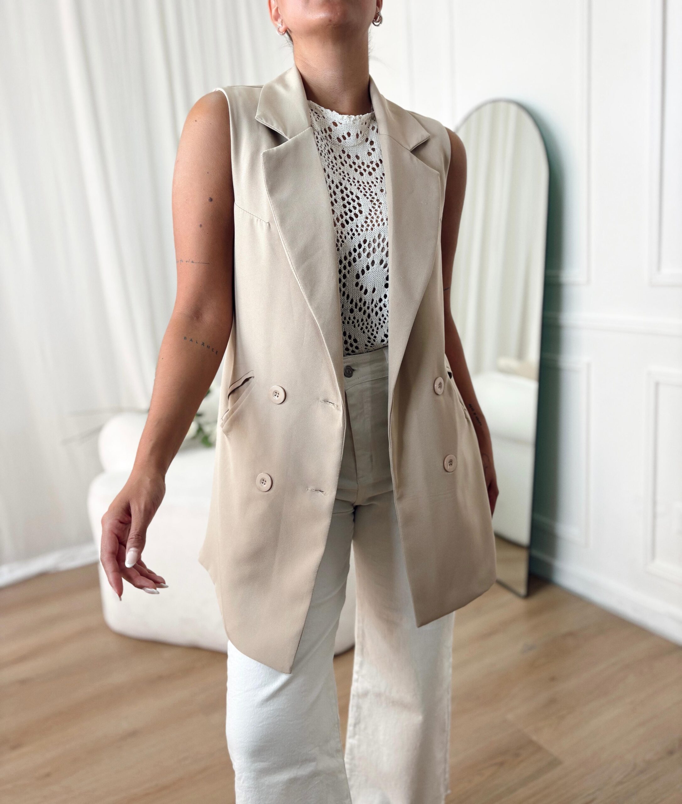 🤍 Este chaleco no puede faltar en tu armario 💓 Es una prenda elegante y sofisticada. Su diseño clásico que combina la elegancia con un toque audaz y moderno lo hacen perfecto 😉💖 Confeccionada en sastre de hermosa calidad que se nota en cada detalle, desde la suavidad al tacto hasta la caída perfecta de los pliegues 🌺 Cuenta con un escote profundo en “v” añadiendo sensualidad y feminidad al chaleco, creando un efecto visual atractivo que a su vez ayuda a destacar el cuello y rostro. Además, su longitud largo bajo la cola le brinda ser una prenda mas refinada y dramática 🎀 Cuenta con dos bolsillos funcionales en su frente, permitiéndonos llevar pequeños objetos de manera segura y con toda la onda. También con dos botones funcional a su tono, que agregan ese detalle minimalista, lo que contrasta con el diseño del chaleco quedando una prenda bien equilibrada 🌸 Sus terminaciones IMPECABLES la terminan de hacer una prenda exquisita 🩰 Su delicadeza y sutileza la hacen ideal para quienes buscan una prenda que combine estilo y comodidad sin sacrificar la elegancia 💄 Podés usarlo como primera piel o con otras prendas debajo. Perfecto en looks de día, para oficina, para un evento, e incluso de noche se adapta perfecto gracias a la delicadeza del textil y su diseño mas atrevido 🔥