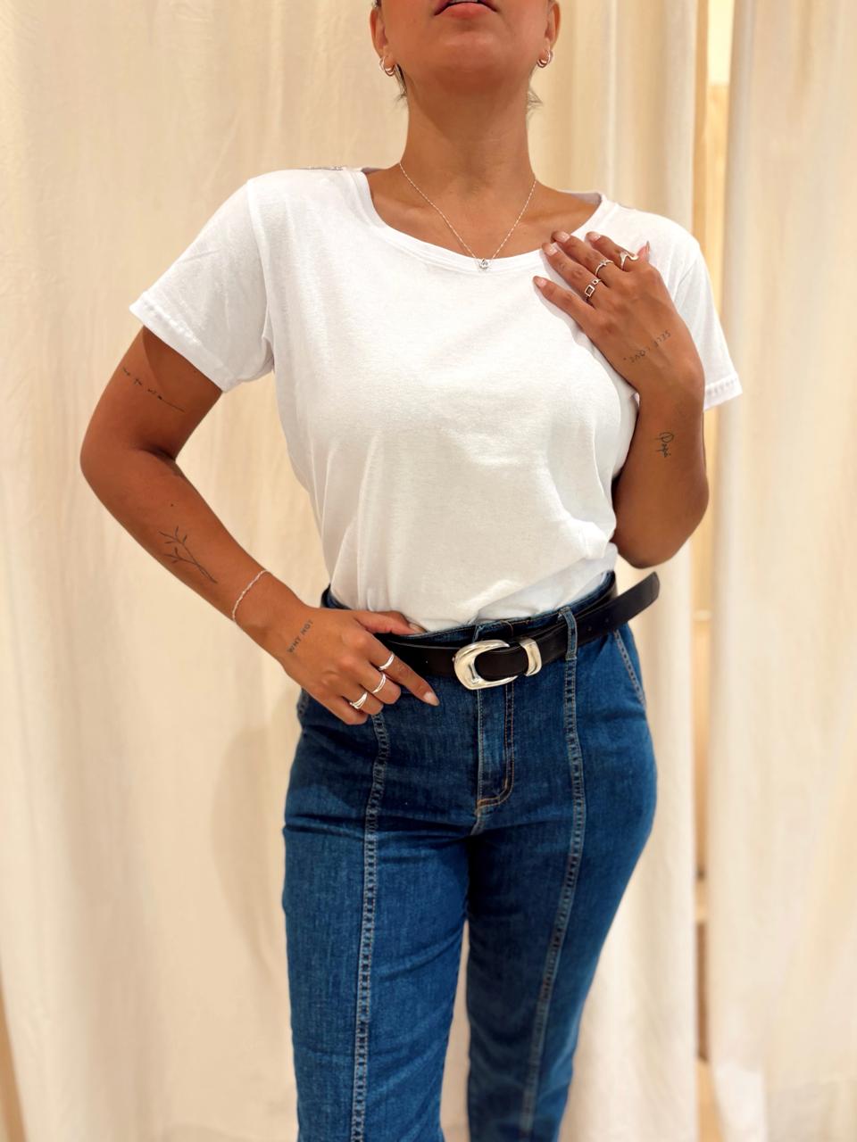 ✨ Remera clásica cuello a la base, disponible en 2 tonos y 2 variación de talle con detalle de stras en hombros .