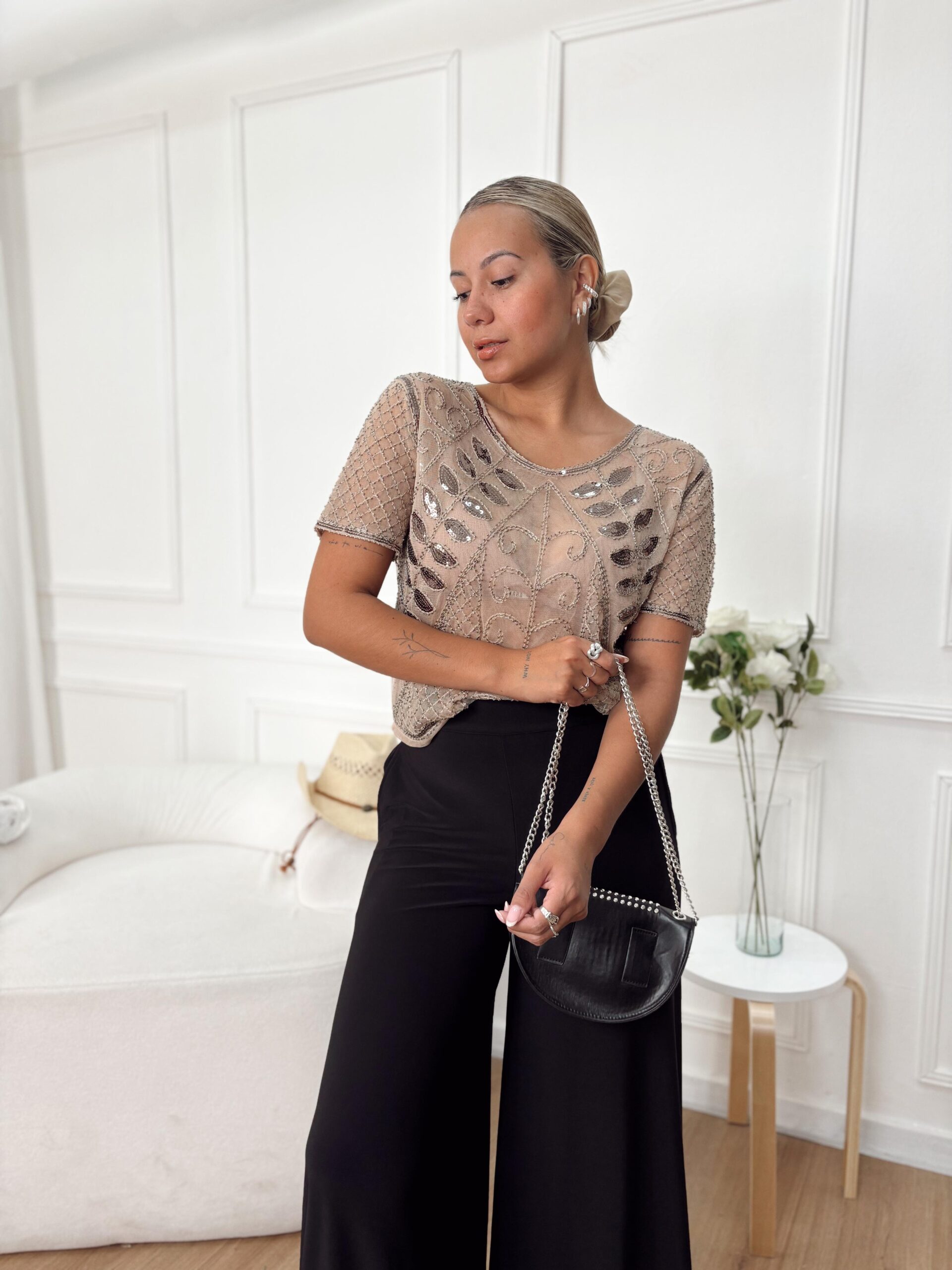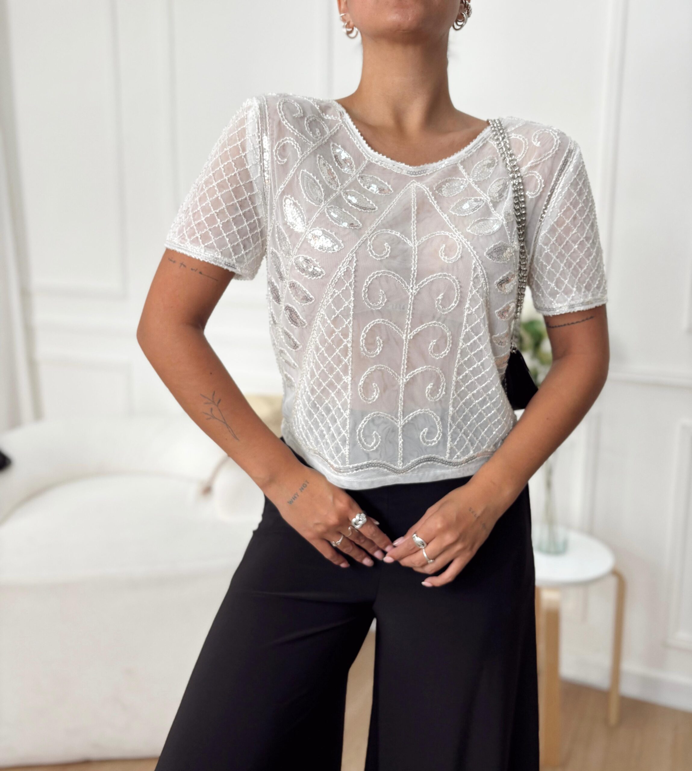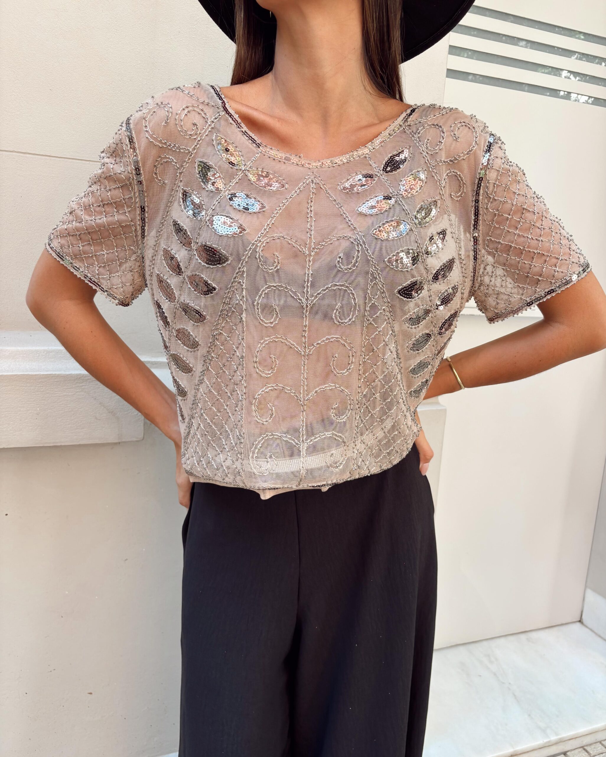 REMERA IMPORTADA LENTEJUELAS CON MANGAS